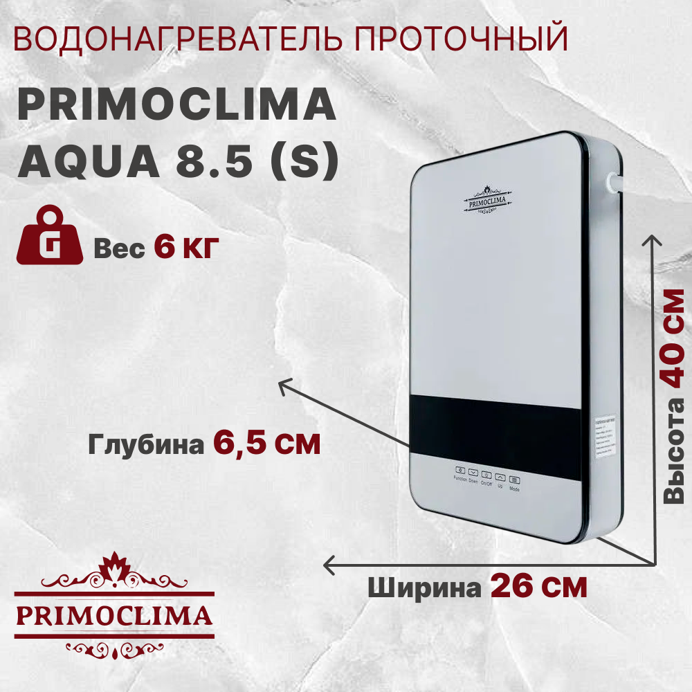 Электрический проточный водонагреватель PRIMOCLIMA PC AQUA 8.5 (S)/7л. мин/8,5 кВт/серебристый информация: