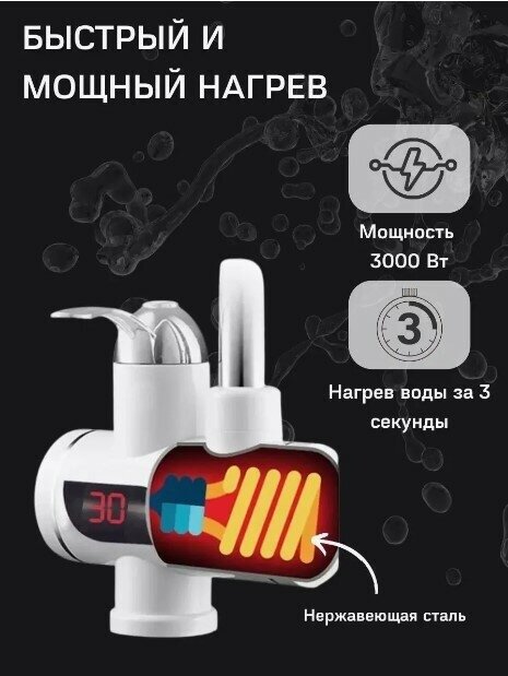 Водонагреватель проточный электрический с дисплеем, Кран нагреватель для горячей воды, Cмеситель с водонагревателем
