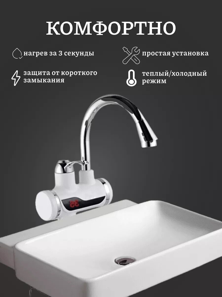 Водонагреватель проточный электрический с дисплеем, Кран нагреватель для горячей воды, Cмеситель с водонагревателем