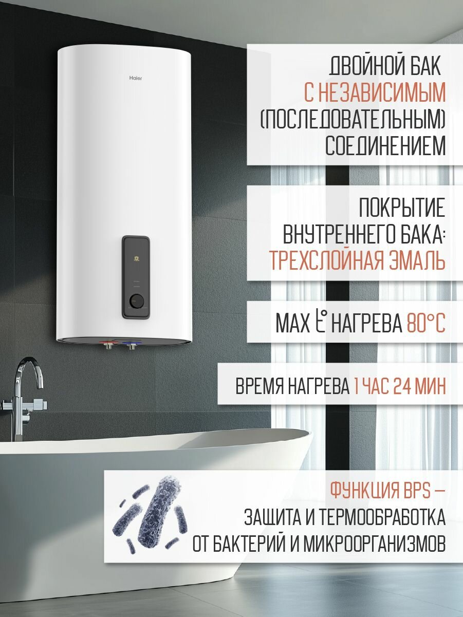 Водонагреватель HAIER ES80V-F3 накопительный плоский настенный электрический (80 литров, 3 кВт) информация: