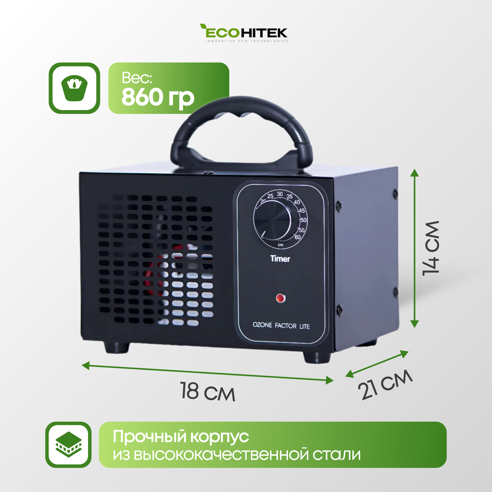 Озонатор профессиональный EcoHitek Ozone Factor Lite. Охват 1-150 кв. м. Озонатор воздуха для избавления oт запахов, плесени для дезинфекции воздуха. информация: