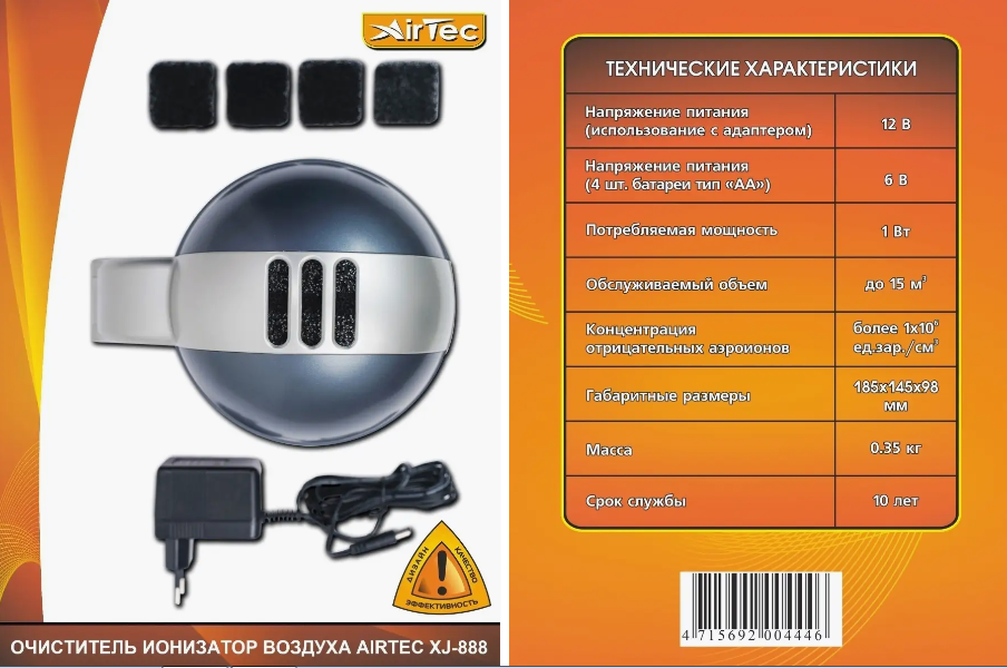 Ионизатор воздухоочиститель AirTex XJ-888, для помещений, площадь до 5 м², настольный, от сети информация: