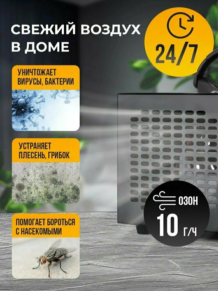 Озонатор 500 мг/час, 220AC/12DC с таймером. Очиститель и очиститель воздуха, воды, продуктов и холодильника, охват до 50 м2. Озонатор для дома.