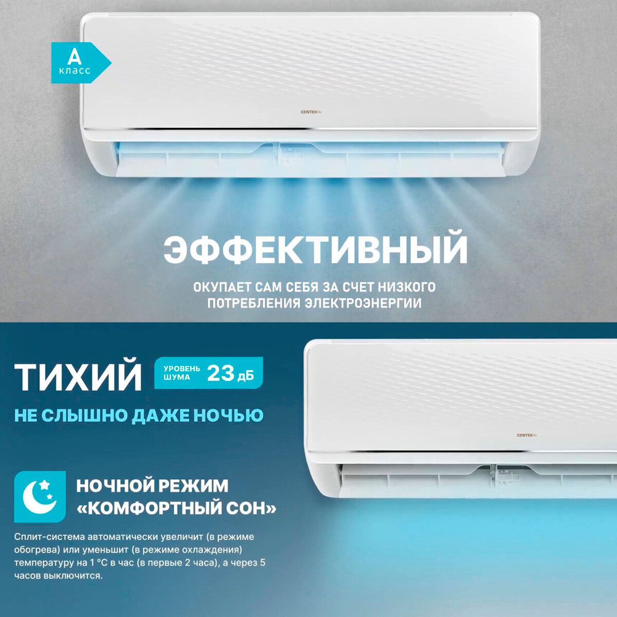 Сплит-система Centek CT-65C07 /24м2/ 2650Вт/скрытый LED дисплей/ EER-3.21/ Тихий до 23 дб/ компрессор GMCC