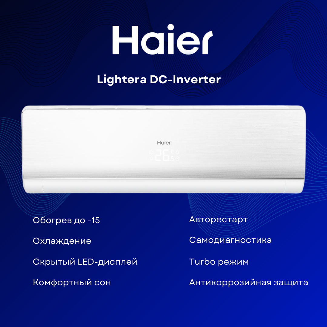 10 цен на Инверторная сплит-система Haier Lightera AS09NS6ERA-W / 1U09BS3ERA на 25 м²