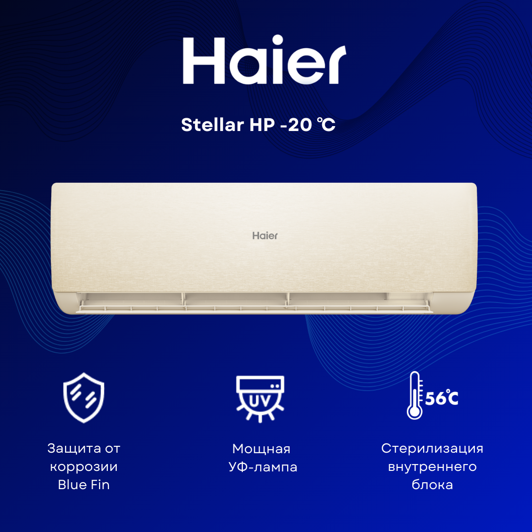 Инверторная сплит-система Haier Stellar HP AS25SHP1HRA-C / 1U25SHP1FRA на 25 м² 60 900 ₽