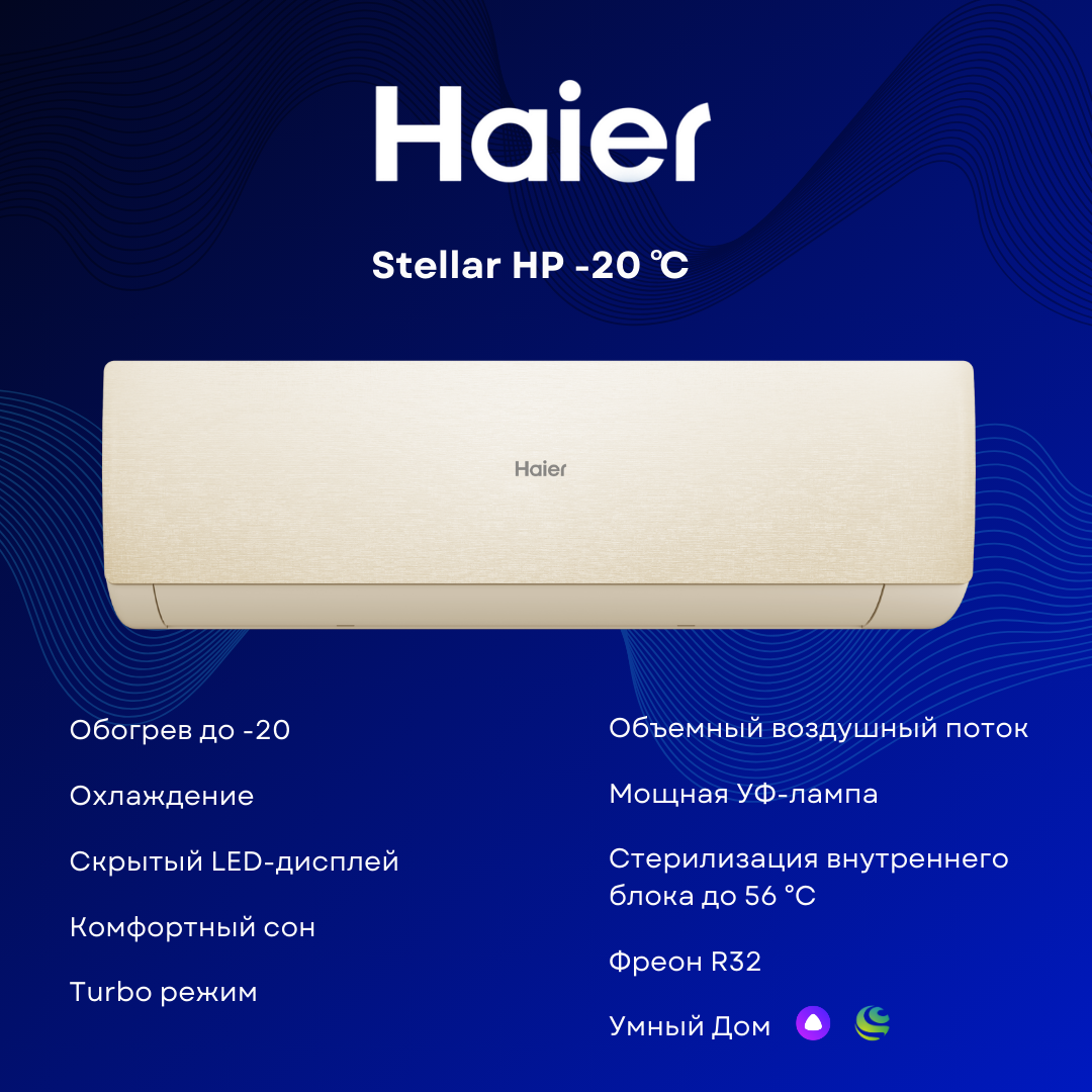 Инверторная сплит-система Haier Stellar HP AS25SHP1HRA-C / 1U25SHP1FRA на 25 м² 60 900 ₽