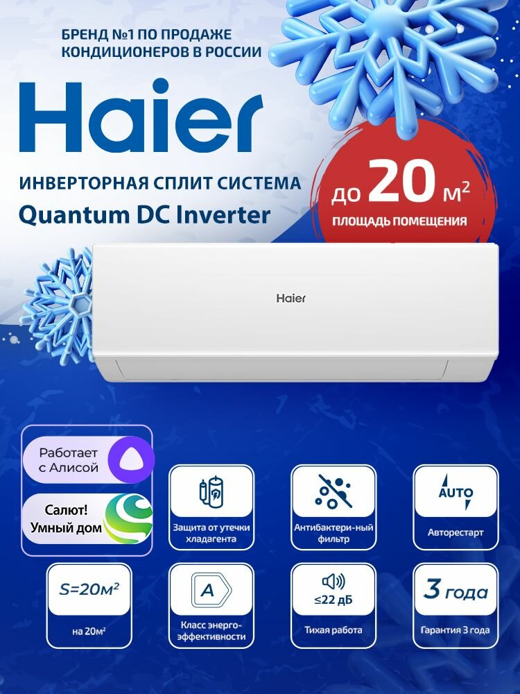 10 цен на Новая инверторная сплит-система Haier QUANTUM Inverter AS20HQJ1HRA-W/1U20HQJ1FRA, для помещений 20 кв. м.
