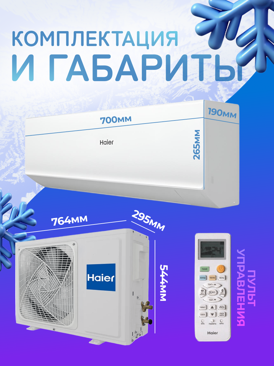 | Подробная комплектация | Внутренний блок, наружный блок, инструкция пользователя, пульт ДУ |