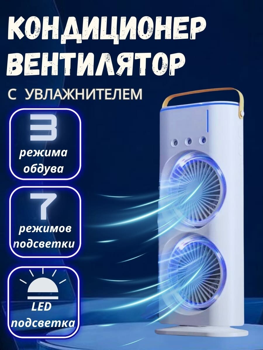 Отзывы на Мобильный кондиционер, вентилятор с увлажнителем, RGB-подсветка, пульт управления в комплекте, цвет белый