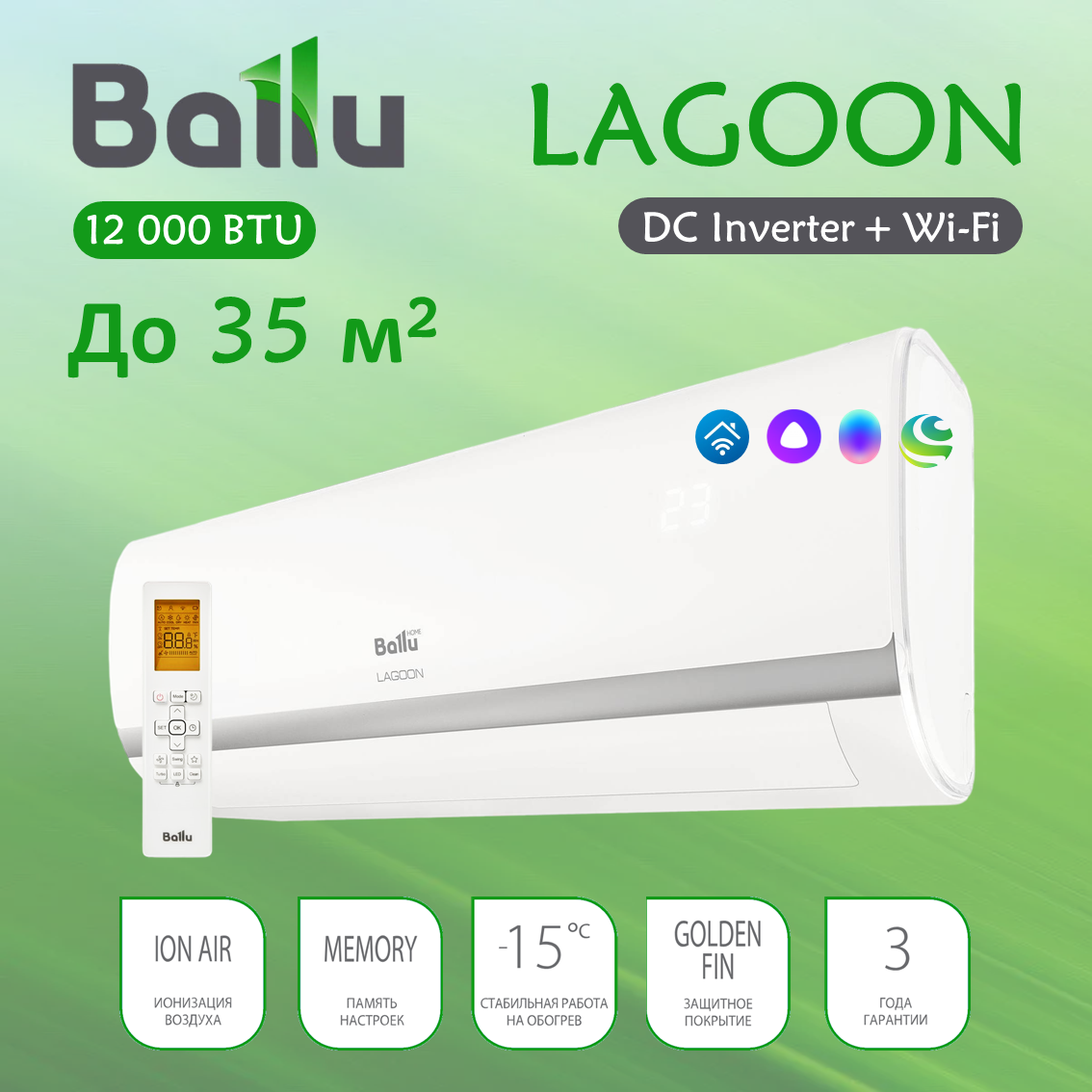 10 цен на Инверторный кондиционер с Wi-Fi Ballu Lagoon DC inverter BSDI-12HN8 (на помещение до 35 м2)