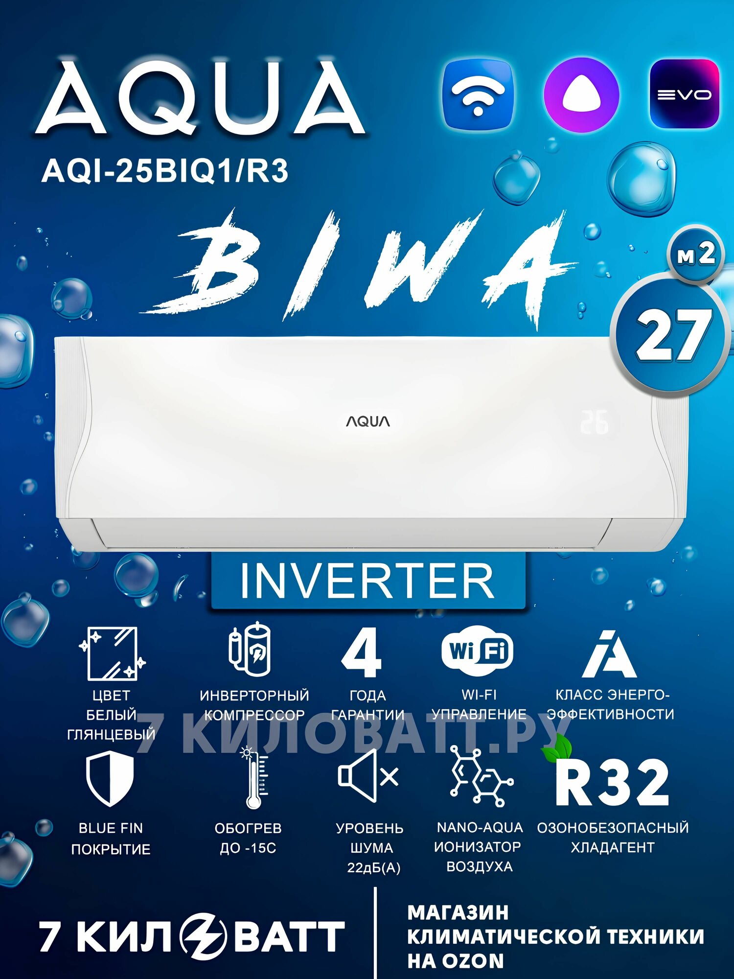 10 цен на Сплит-система инверторная AQUA Biwa AQI-25BIQ1/R3 на 27 м2 встроенный Wi-Fi, (завод изготовитель Haier)