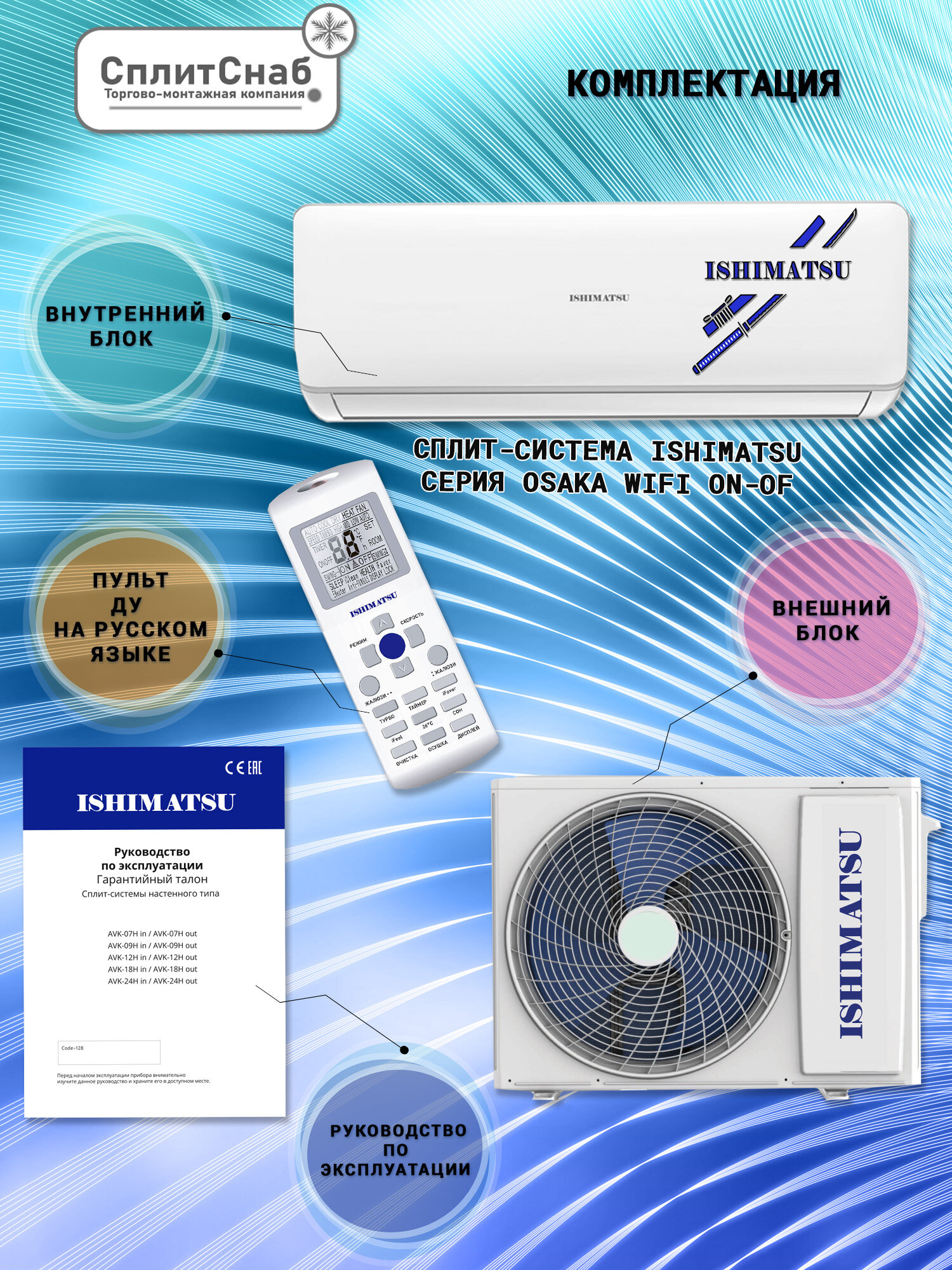 Сплит-система ISHIMATSU Osaka AVK-12H On/Off 35 м² с WiFi модулем, комплект