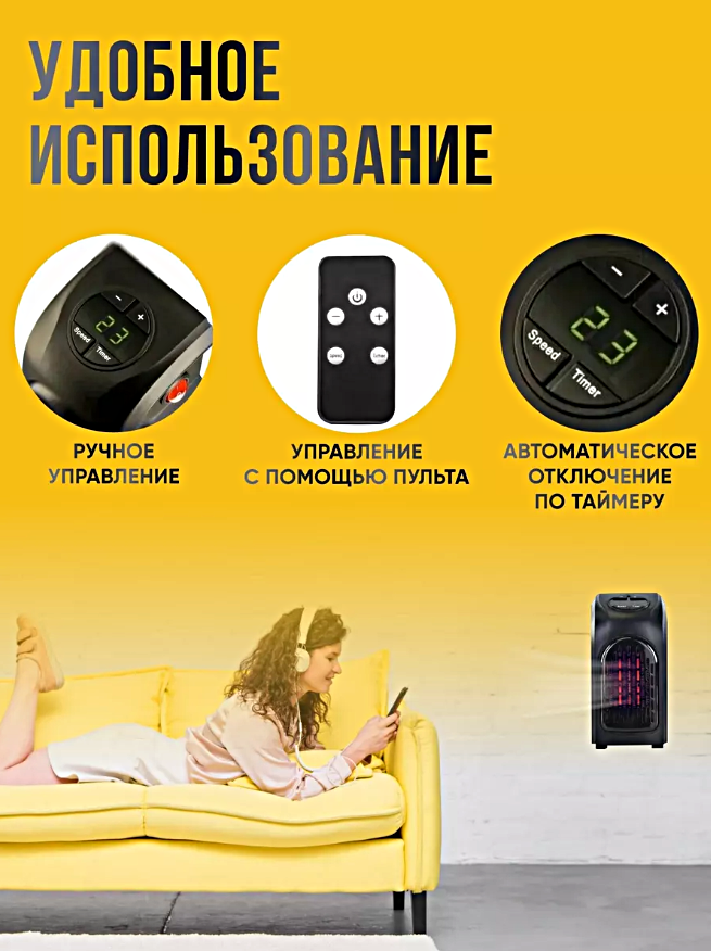 Отзывы на Обогреватель портативный HANDY, Портативный мини обогреватель в розетку, Пульт ДУ, Тепловентилятор 400Вт, Черный
