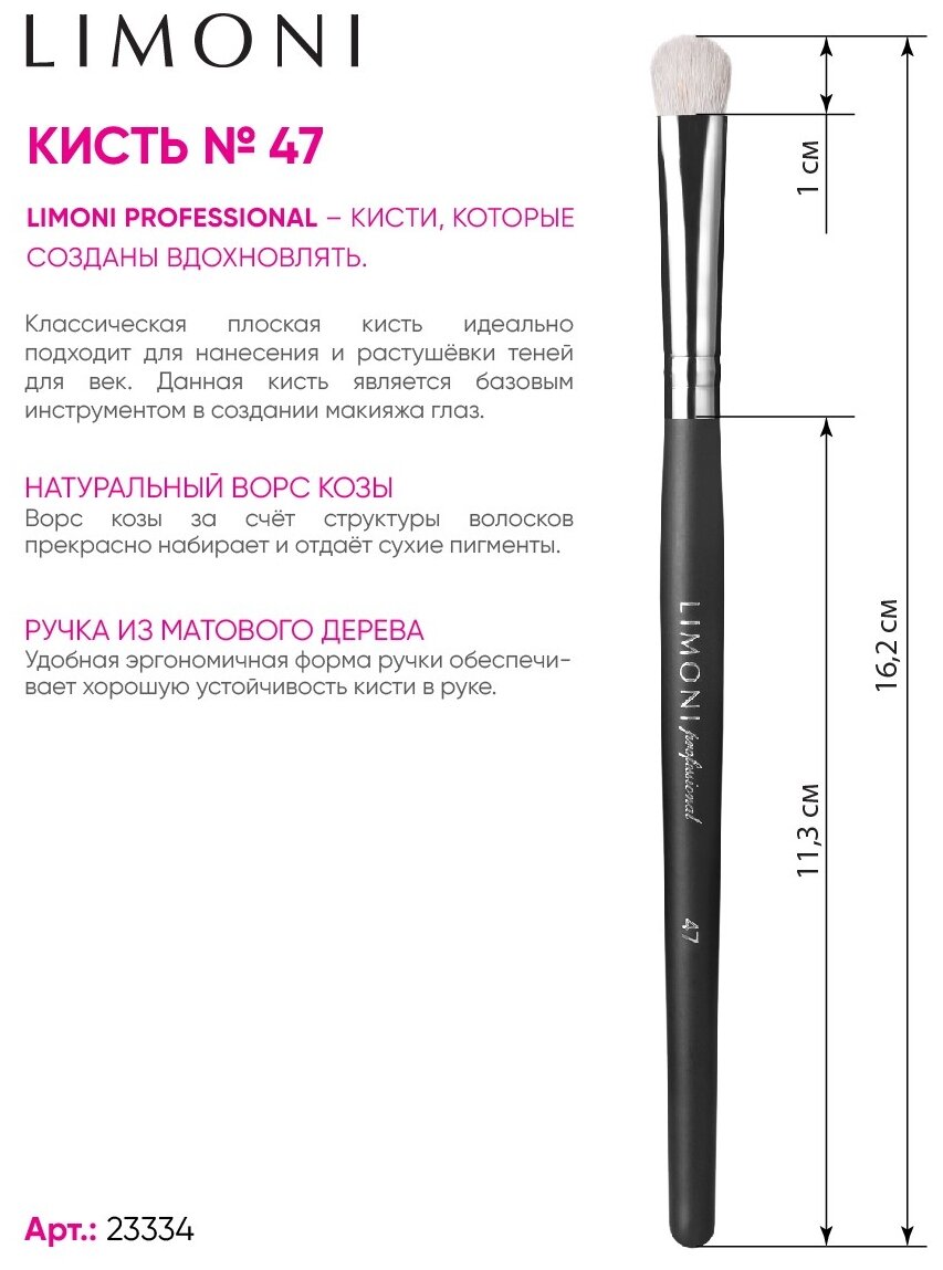 Кисть для нанесения теней № 47, коза / Professional информация: