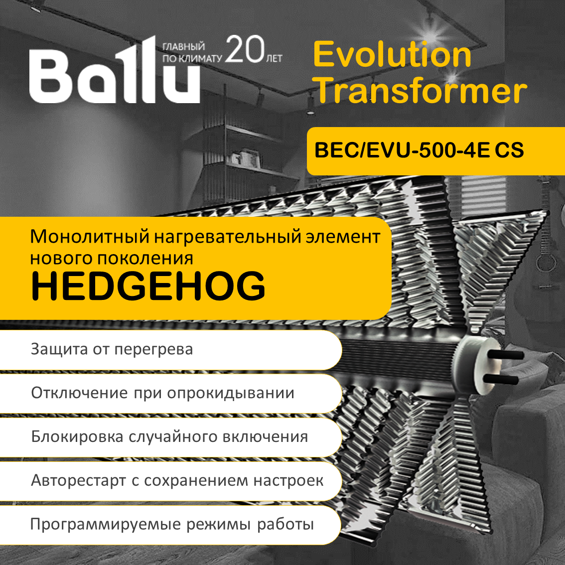 Отзывы на Конвектор Ballu BEC/EVU-500-4E CS Evolution Transformer с электронным управлением, ножками и WiFi