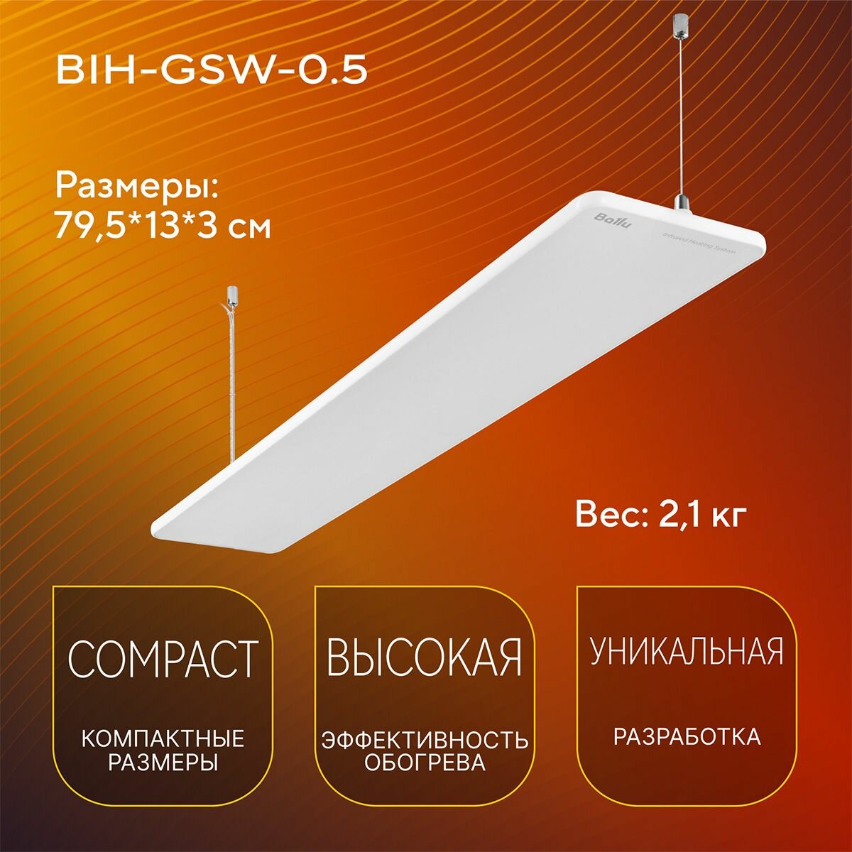 Комплект обогреватель инфракрасный Ballu BIH-GSW-0.5 + Терморегулятор BMT-1 информация: