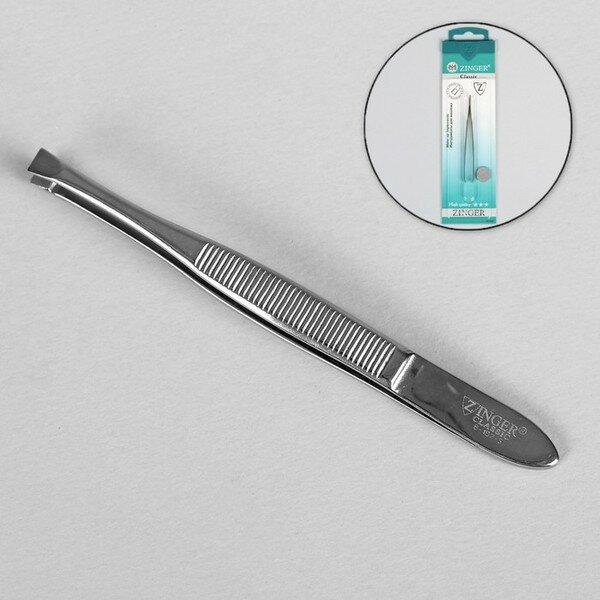 ZINGER Пинцет рифленый прямой для бровей B-157-S, серебристый