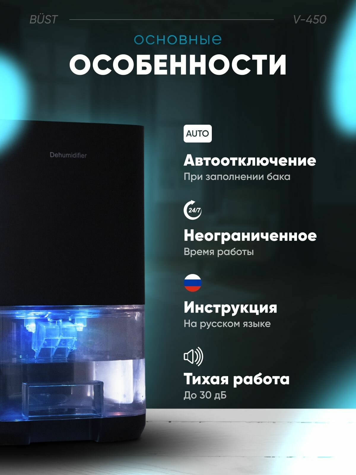 Осушитель воздуха для дома BUST DEHUMIDIFIER V-450 Черный информация: