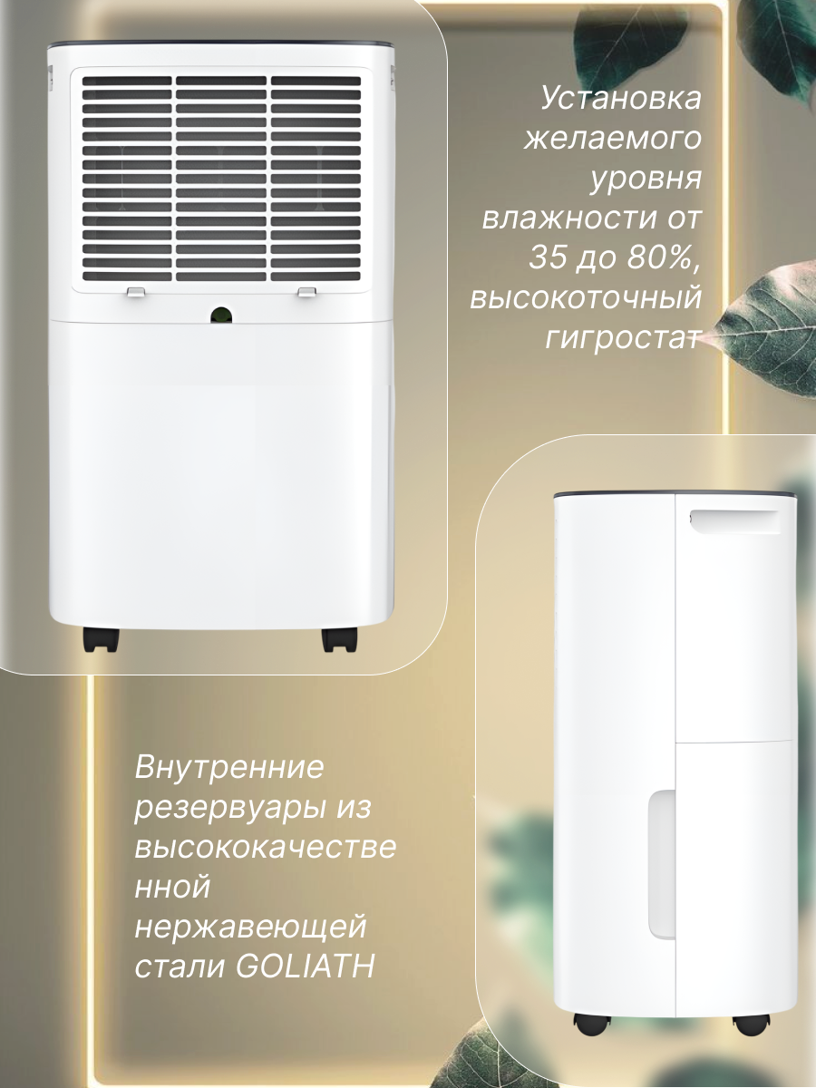 | Особенности | встроенный гигрометр / дисплей / колёса / ручка для переноски / гигростат / Информационный дисплей / Осушитель воздуха / Таймер |