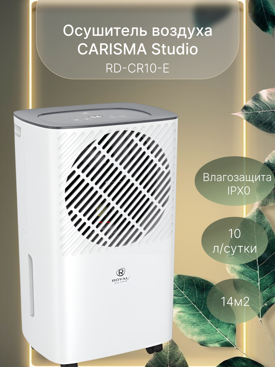 | Гарантийный срок | 12 мес., Гарантийный срок осушителя воздуха Royal Clima CARISMA Studio RD-CR10-E составляет 12 месяцев по вине производителя |