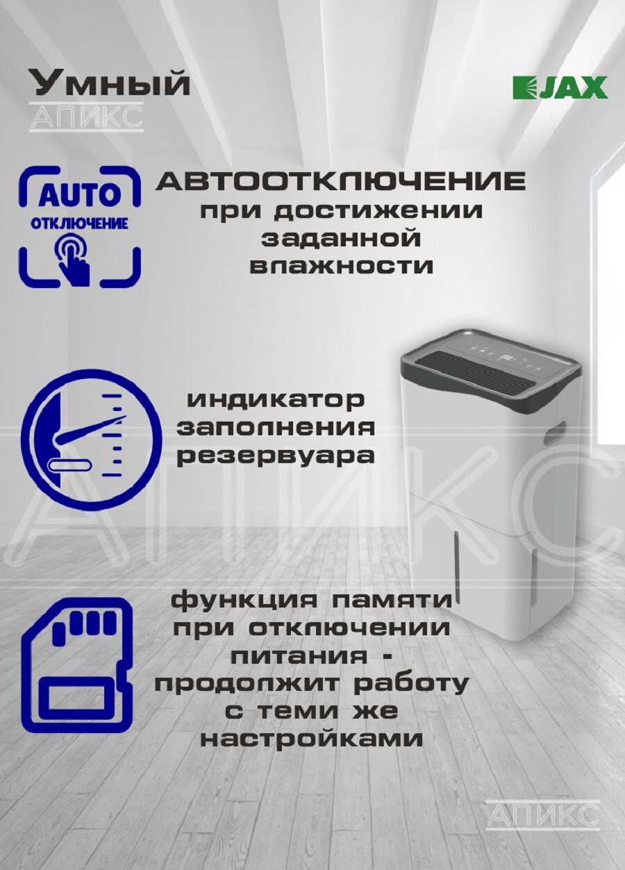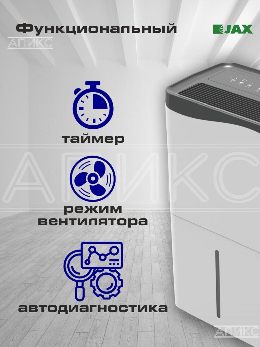 Осушитель воздуха JAX "JHAHD-50E", для помещений до 80 кв. м, 50 л в сутки, сенсорный информация:
