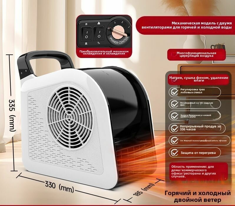 Компактный мощный воздуходув для сушки пола 1800 Вт, портативный осушитель с функцией холодного и горячего воздуха информация:
