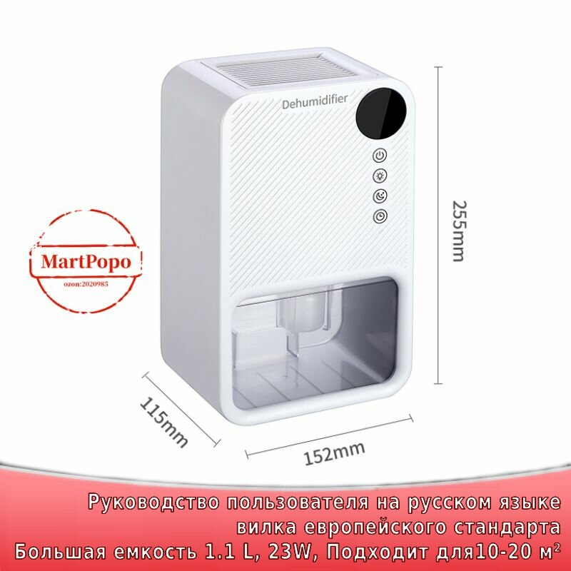 Осушитель воздуха бытовой, 1.1 L, 23W, Подходит для10-20 м информация: