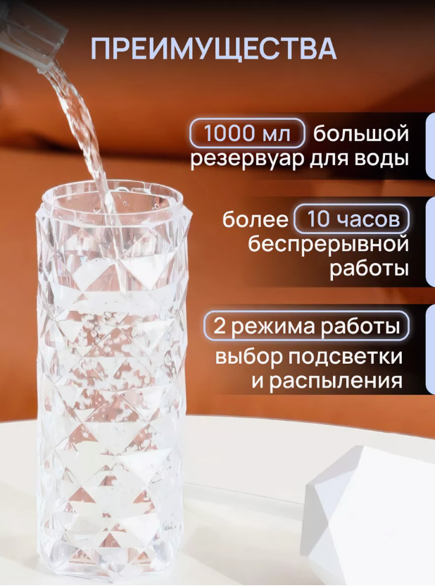 Увлажнитель воздуха с подсветкой аромадиффузор/ увлажнитель воздуха кристалл 1000 мл информация: