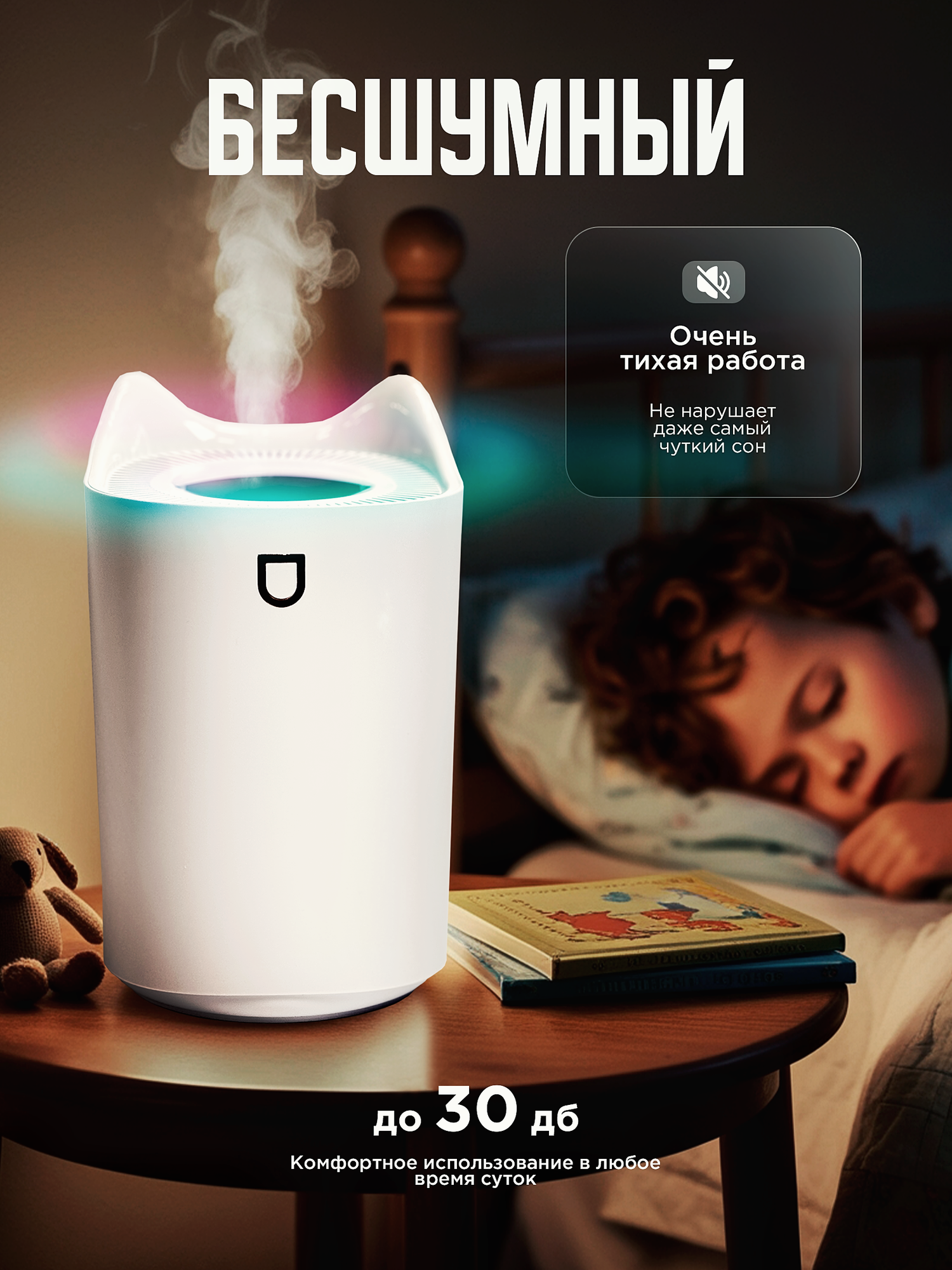 10 цен на Увлажнитель воздуха для квартиры кошечка 3000 ML с подсветкой