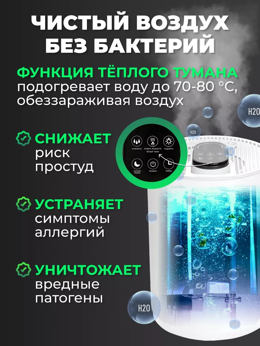 Увлажнитель воздуха для дома ультразвуковой с функцией тёплого тумана и аромадиффузора информация: