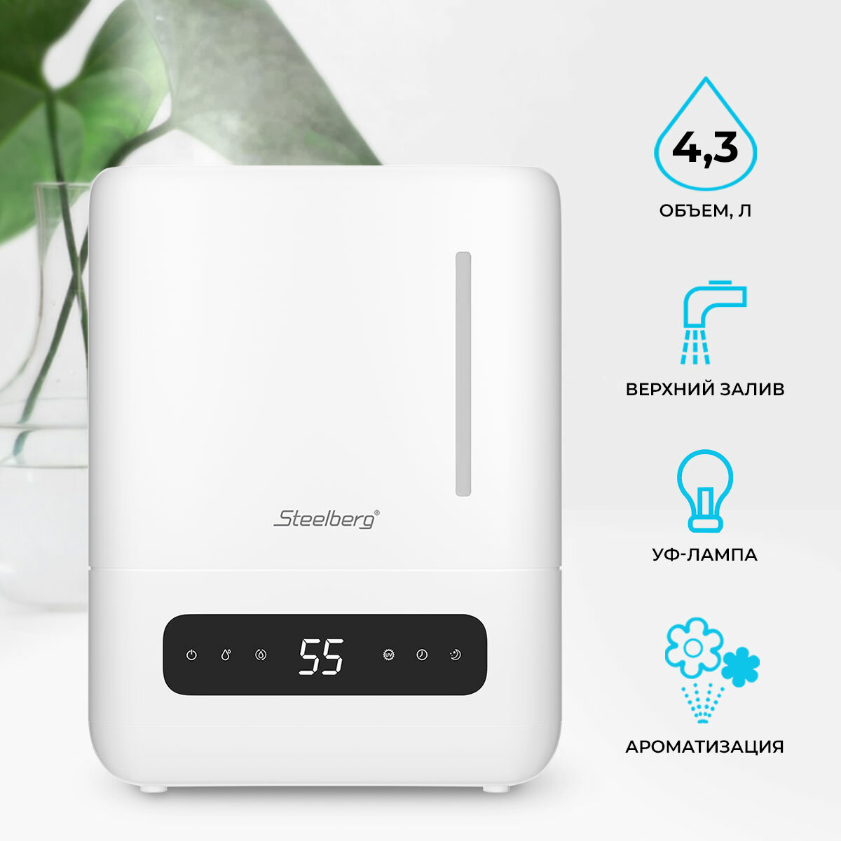 Увлажнитель воздуха ультразвуковой STEELBERG, STL-UR300/4.3E-WT , белый информация:
