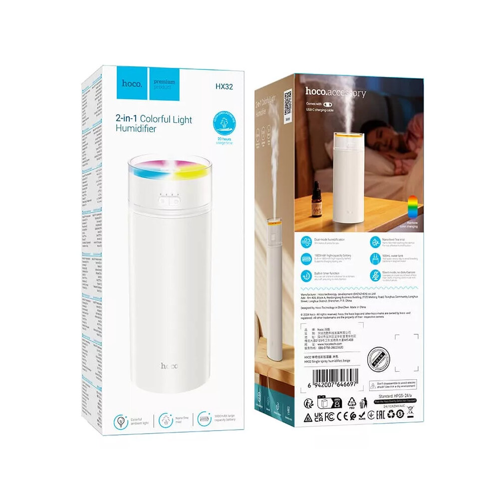 Hoco Увлажнитель воздуха HOCO HX32 2в1 500мл 1800mAh бежевый информация: