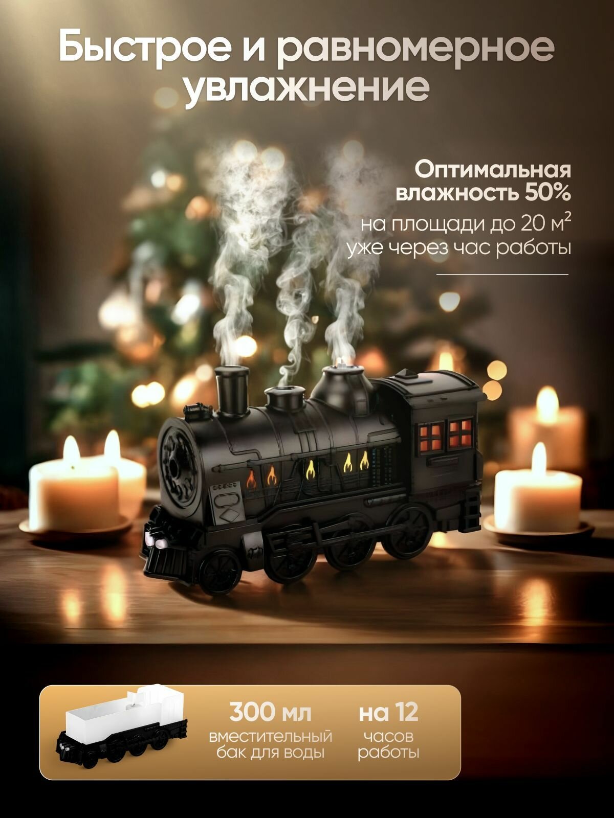 | Подробная комплектация | Увлажнитель воздуха паровоз, пульт управления, провод зарядный |