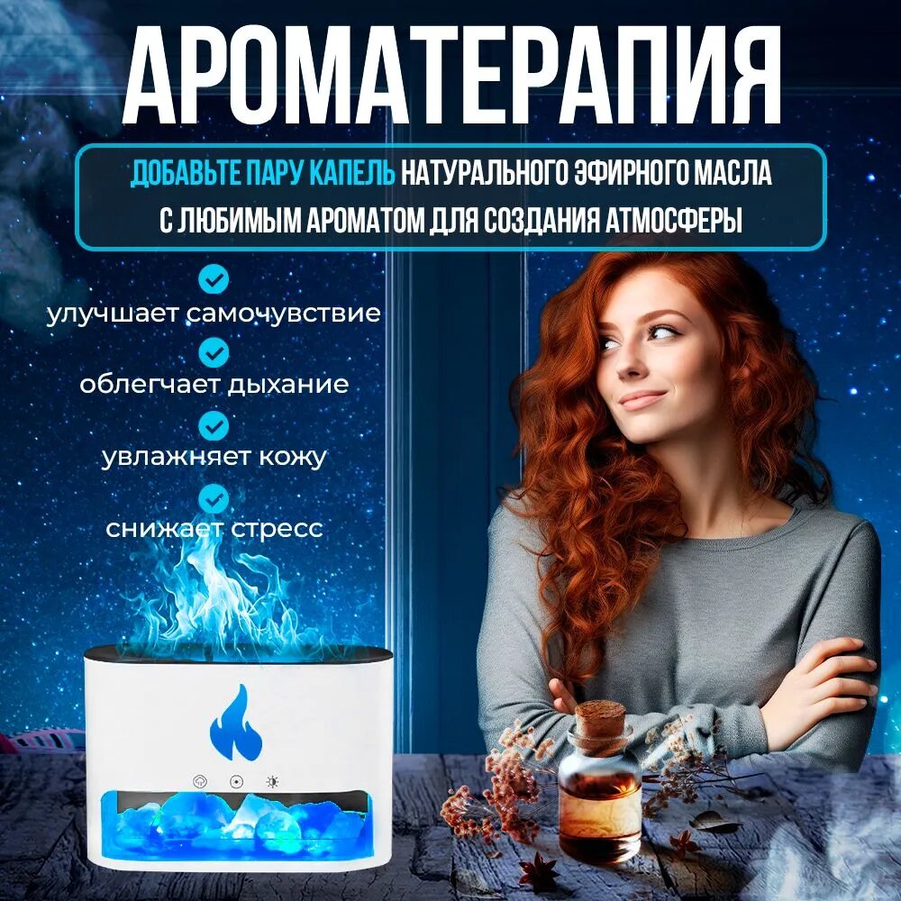 Увлажнитель воздуха и аромадиффузор с подсветкой для дома, ночник с эффектом пламяни