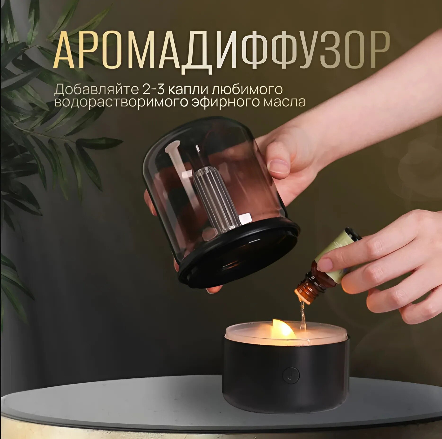 Увлажнитель воздуха и аромадиффузор с подсветкой для дома, ночник с эффектом пламяни