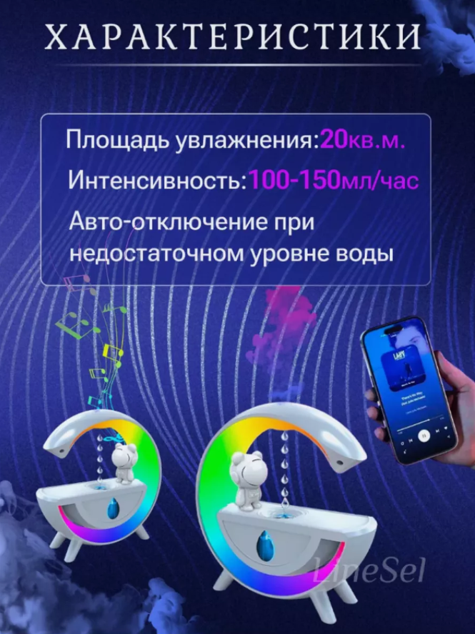 Увлажнитель воздуха антигравитационный с подсветкой и динамиками информация: