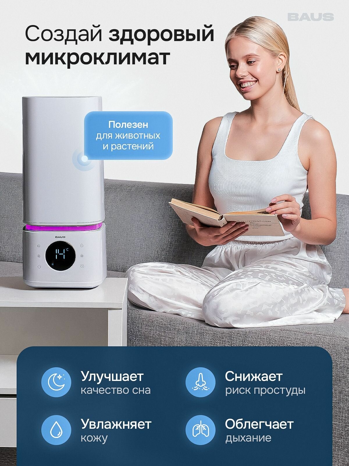 Увлажнитель воздуха для дома ультразвуковой настольный с подсветкой для новорожденных 8л информация: