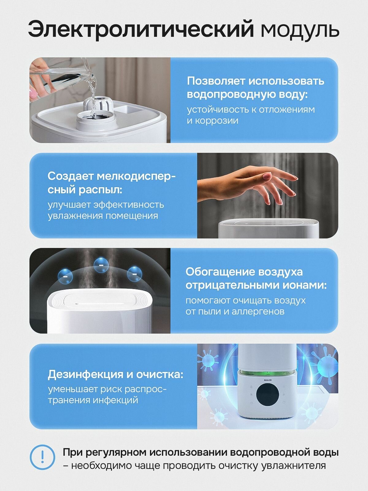 | Настройка влажности | Автоматическое поддержание влажности, Регулировка интенсивности испарения |
