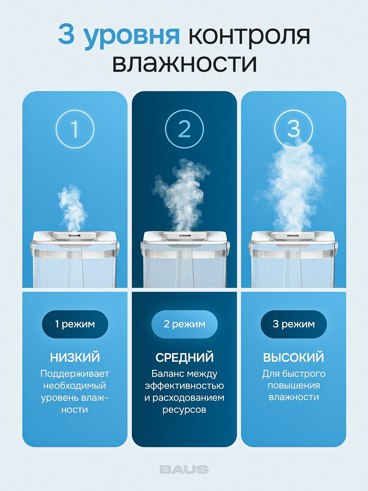 Увлажнитель воздуха Baus, ультразвуковой, 6л, белый/прозрачный информация: