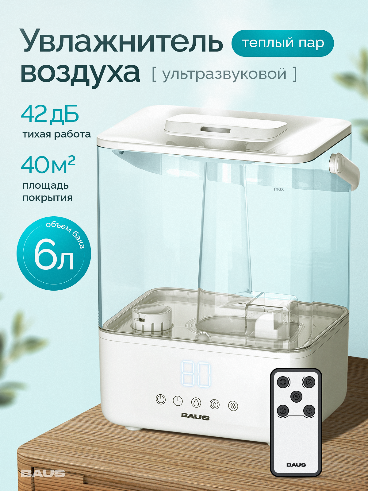 Отзывы на Увлажнитель воздуха Baus, ультразвуковой, 6л, белый/прозрачный