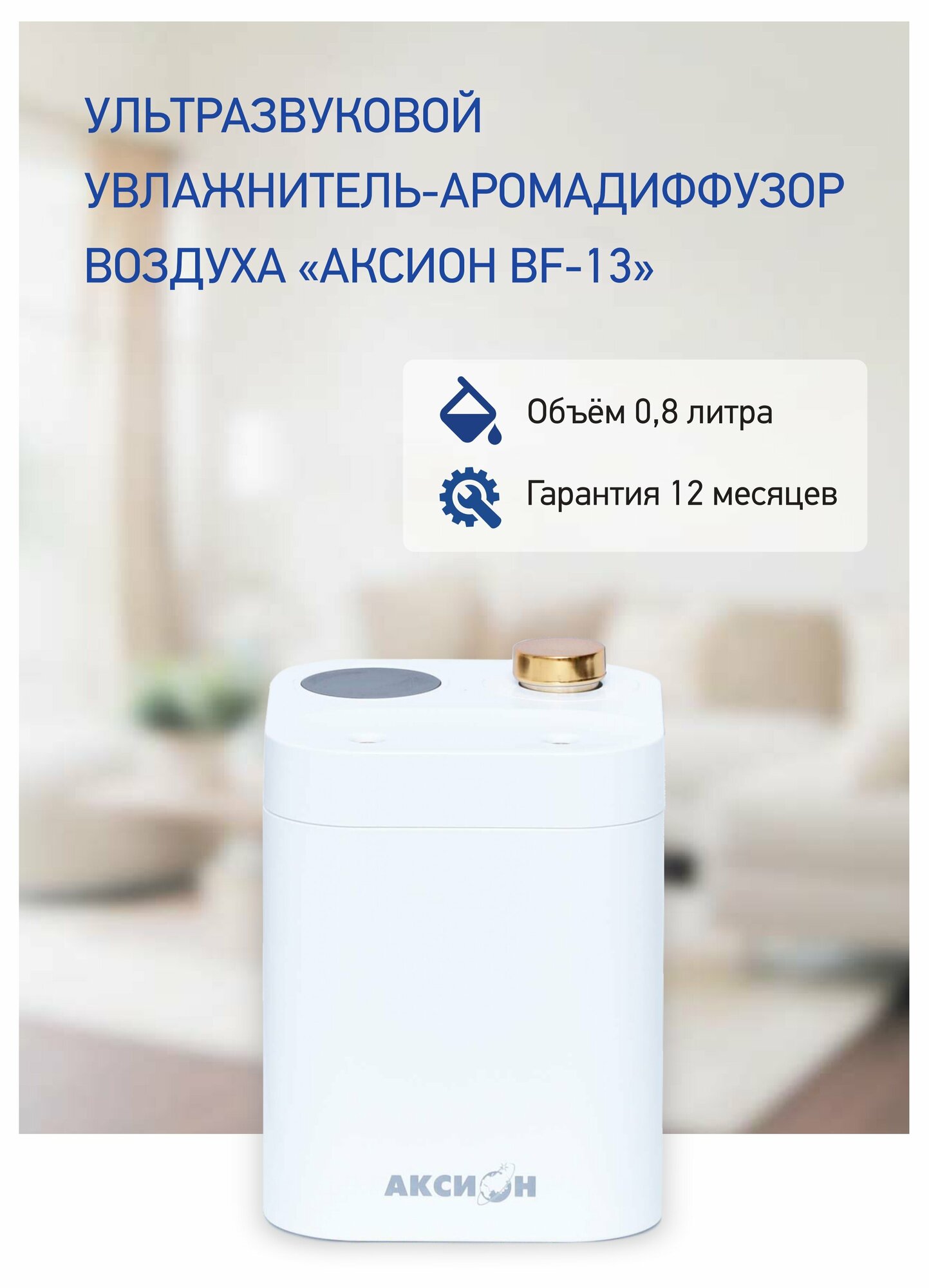 Увлажнитель воздуха Аксион BF-13 ультразвуковой, аромадиффузор для дома, емкость 800 мл. информация:
