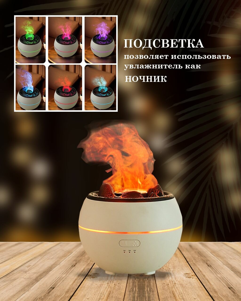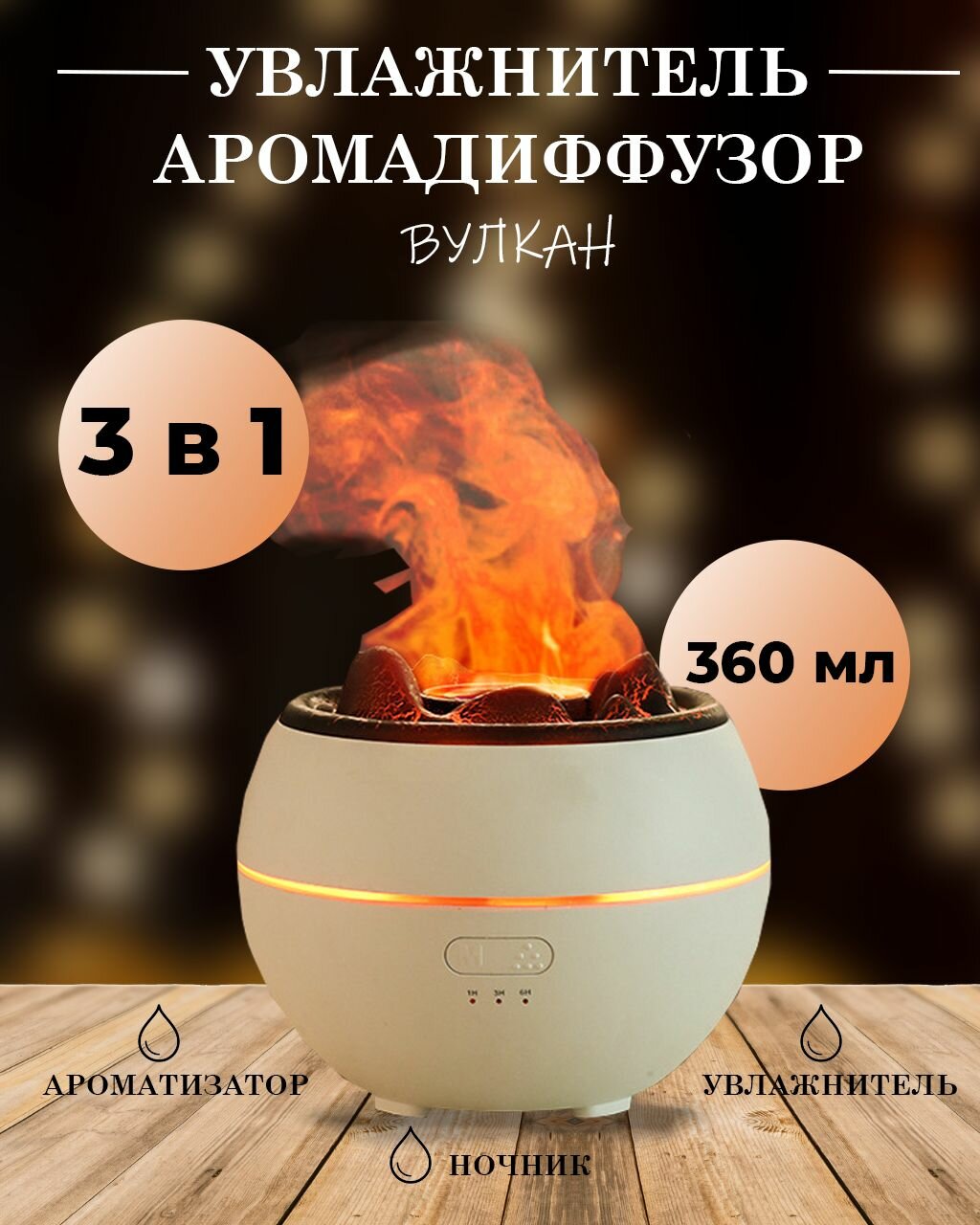 10 цен на Увлажнитель воздуха Вулкан круглый, ароматический диффузор с подсветкой, белый