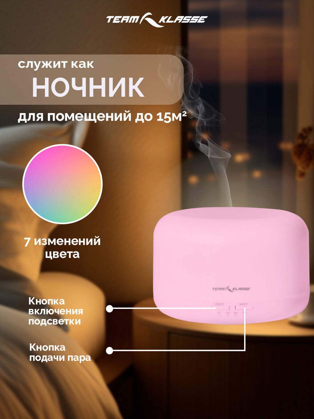| Дополнительная информация | Можно добавить эфирное масло, 7 изменений цвета |