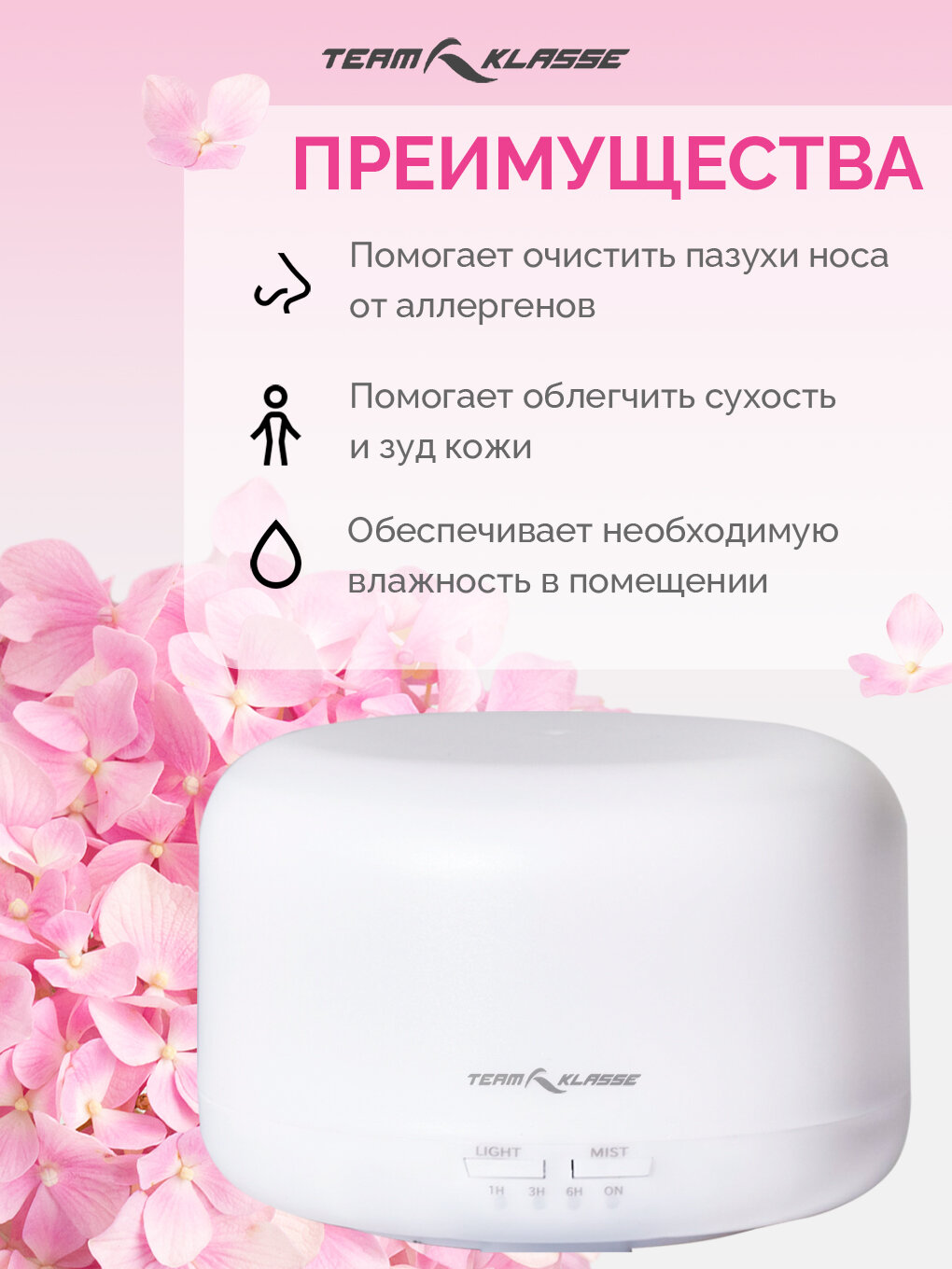 Аромадиффузор электрический для дома (Увлажнитель воздуха) "Team Klasse" для дома и офиса, 0,5л информация:
