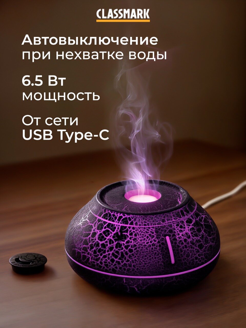 Увлажнитель воздуха для дома c аромадиффузором и подсветкой Classmark, мощность устройства 6.5 Вт, механическое управление, черный информация: