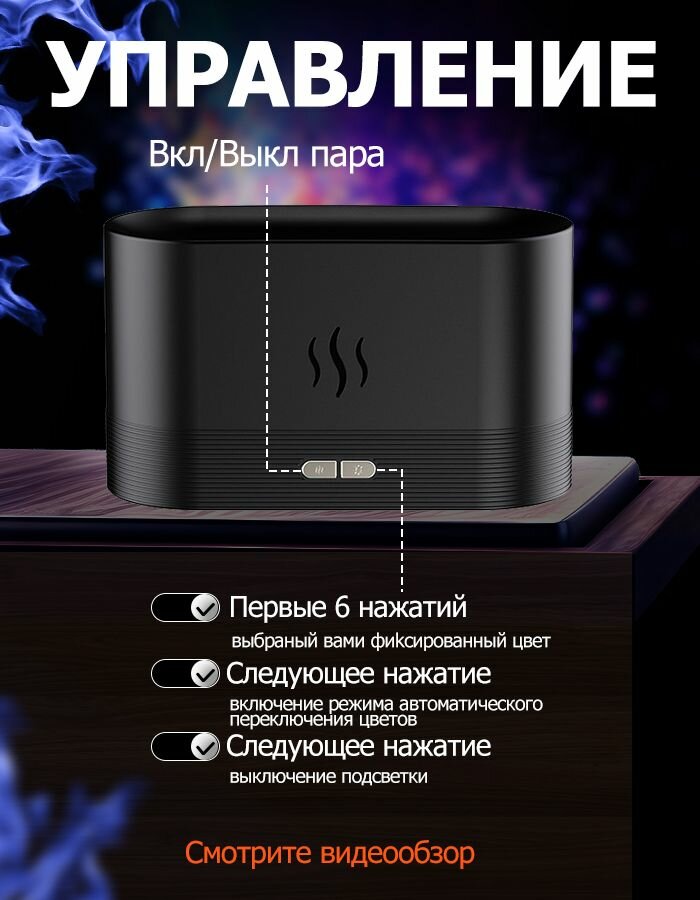 Увлажнитель воздуха и аромадиффузор с подсветкой для дома, ночник с эффектом пламяни