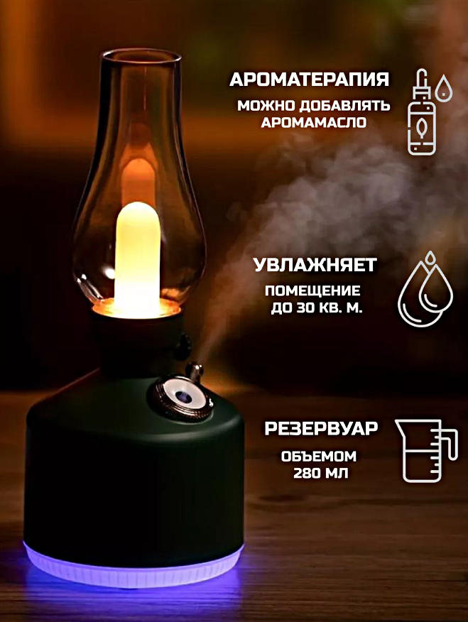 Увлажнитель воздуха ультразвуковой 3 в 1, Аромадиффузор с подсветкой, Ночник для дома, Ретро лампа, Черный информация: