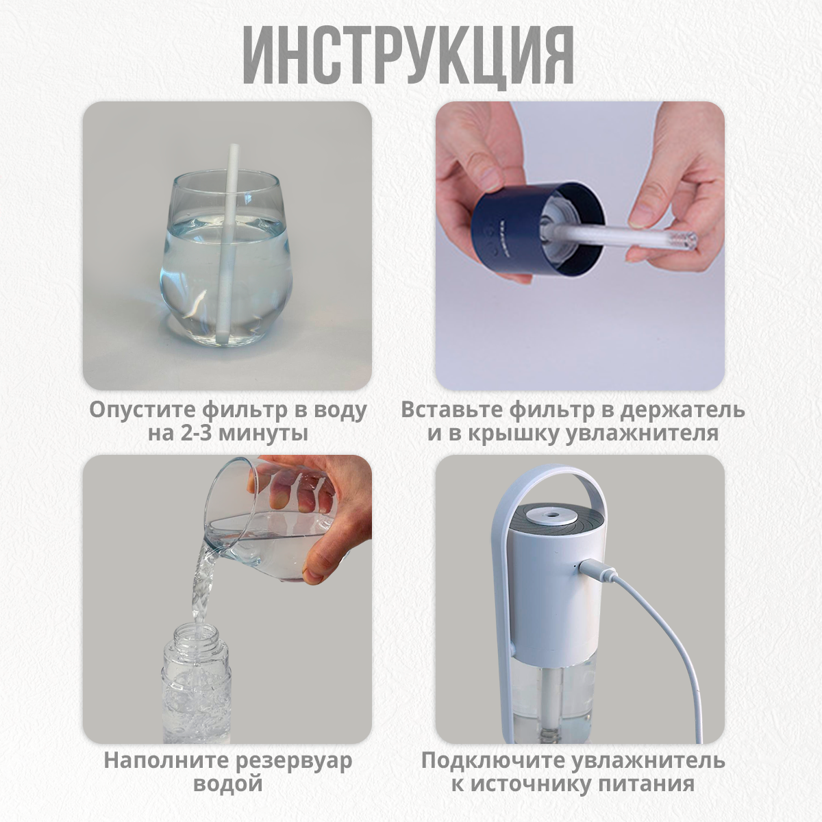 | Подробная комплектация | увлажнитель, USB шнур, инструкция |