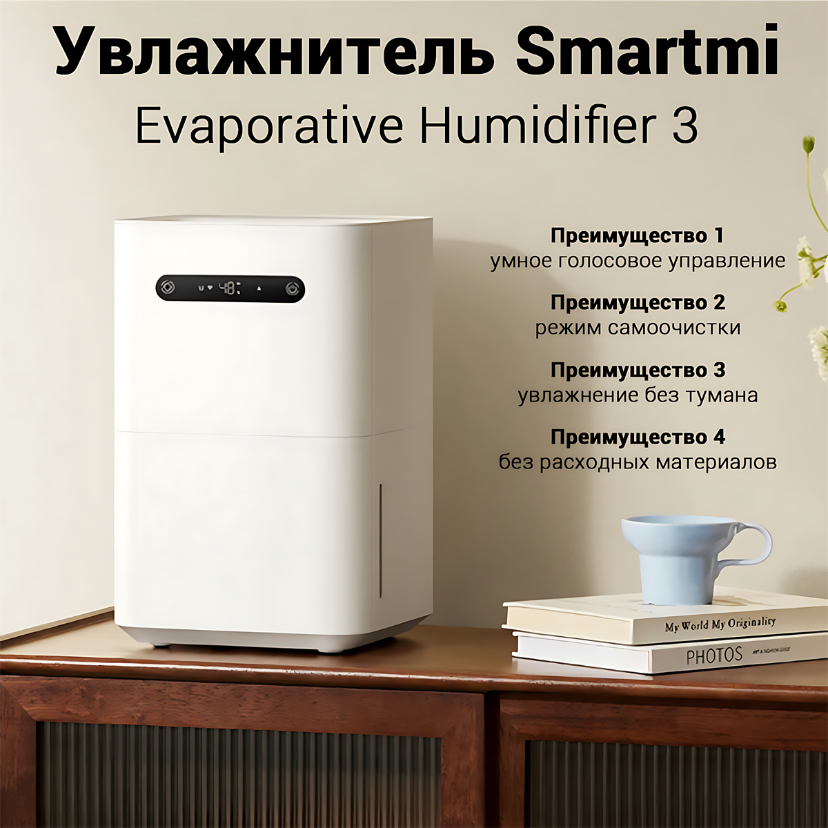Увлажнитель воздуха с функцией ароматизации Smartmi Evaporative Humidifier 3, белый информация: